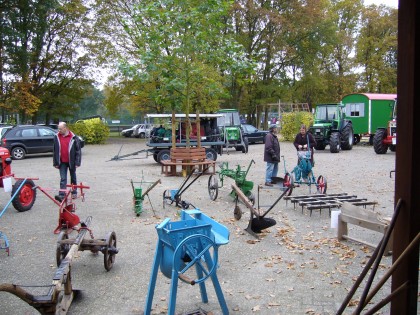 Auch die Schlepperfreunde Flachsmeer zeigen altes Gerät. Ob Pflüge in verschiedenen Versionen, eine Flachsbreche, eine Waage, einen alten Kornweiher oder eine Ansammlung alter Stationärmotoren.