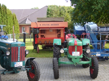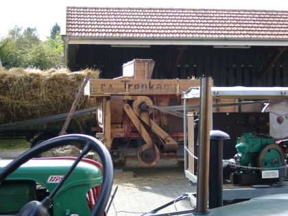 Mit unseren historischen Dreschmaschinen wird das Getreide von den Mitgliedern der Schlepperfreunde gedroschen und das Stroh mit Hilfe einer Oldtimer- Strohpresse (Bj. 1937) zu Ballen gepresst.