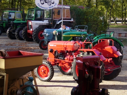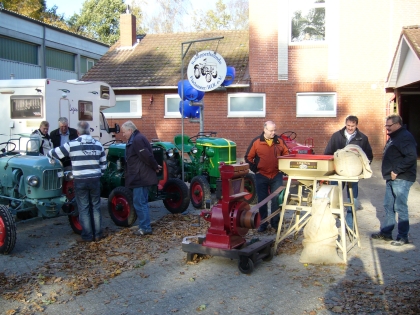Auch die Schlepperfreunde Flachsmeer zeigen altes Gerät. Ob Pflüge in verschiedenen Versionen, eine Flachsbreche, eine Waage, einen alten Kornweiher oder eine Ansammlung alter Stationärmotoren. Natürlich waren auch einige schöne restaurierte Traktoren mit dabei!