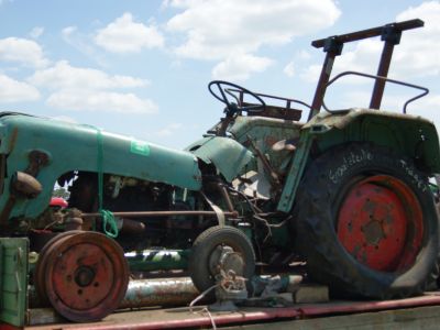 Schrott? Nein, Basis! Auch ganze Trecker konnten auf dem Teilemarkt erworben werden, manch ein Besucher staunte, welchen Zustand ein Oldie hat, bevor er restauriert wird.