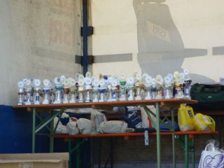 Pokale, Pokale, Pokale Jeder Teilnehmer nahm automatisch an der Pokalverlosung teil. Aufgereiht warten diese auf ihren glücklichen Gewinner.