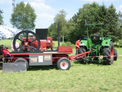Groß und blaugrün Dieser schön restaurierte Hanomag trieb eine große Dreschmaschine an, sehr passend und eindrucksvoll.