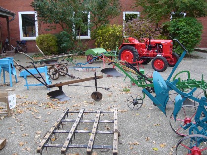 Auch die Schlepperfreunde Flachsmeer zeigen altes Gerät. Ob Pflüge in verschiedenen Versionen, eine Flachsbreche, eine Waage, einen alten Kornweiher oder eine Ansammlung alter Stationärmotoren.